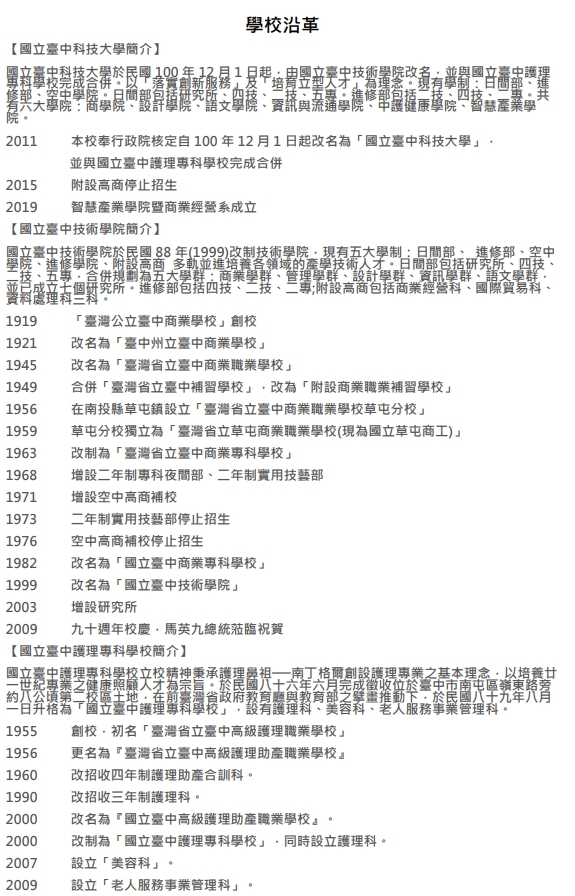 國立臺中科技大學於民國100年12月1日起,由國立臺中技術學院改名,並與國立臺中護理專科學校完成合併。